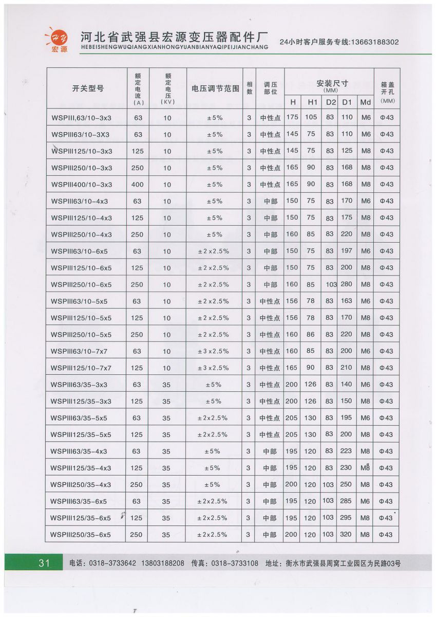 該系列産(chan)品适用于(yú)頻率50、60Hz、額定(ding)電壓10、35Kv;額定(ding)電流63、125、250、400A的三(sān)相油浸🏃式(shì)變♌壓器,可(ke)直接固定(ding)在變壓器(qì)箱蓋或箱(xiāng)壁處,在無(wú)勵磁狀态(tài)下分🐪接調(diào)換