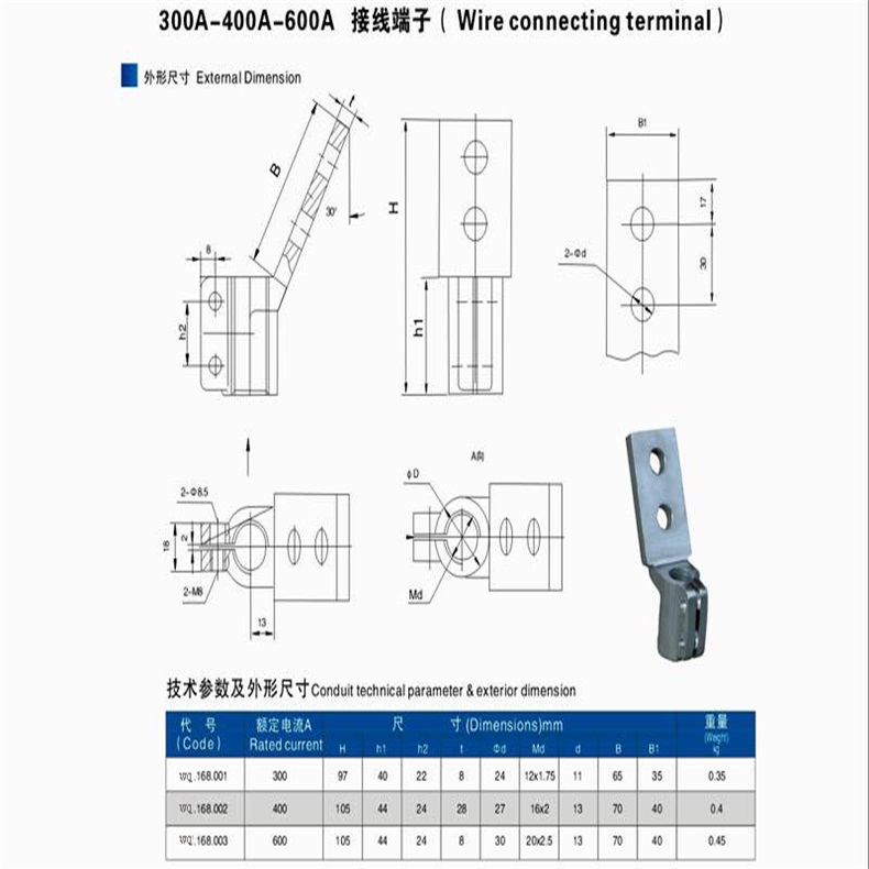 本品采(cǎi)用螺絲套加(jiā)側開縫設計(ji)原理安裝在(zai)設備導電杆(gǎn)上後,按下線(xiàn)與安裝電氣(qi)設備端子所(suǒ)成角的不同(tong)分為0°、30°、90°三📞種。